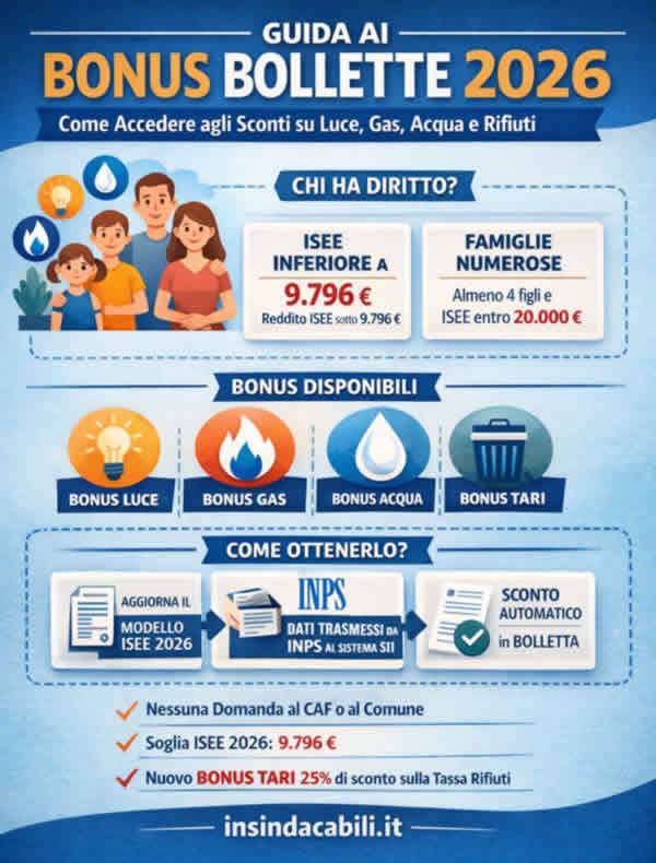 - Bonus Sociale Bollette 2026: requisiti, limite ISEE e novità