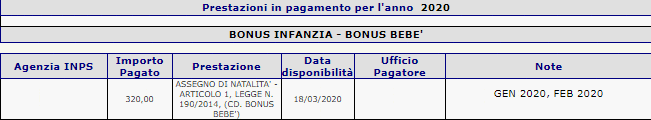 Qui, maggiori dettagli sul Bonus bebè ed assegno di natalità, sulla pagina ufficiale del sito INPS. pagamento Bonus bebè Marzo 2020